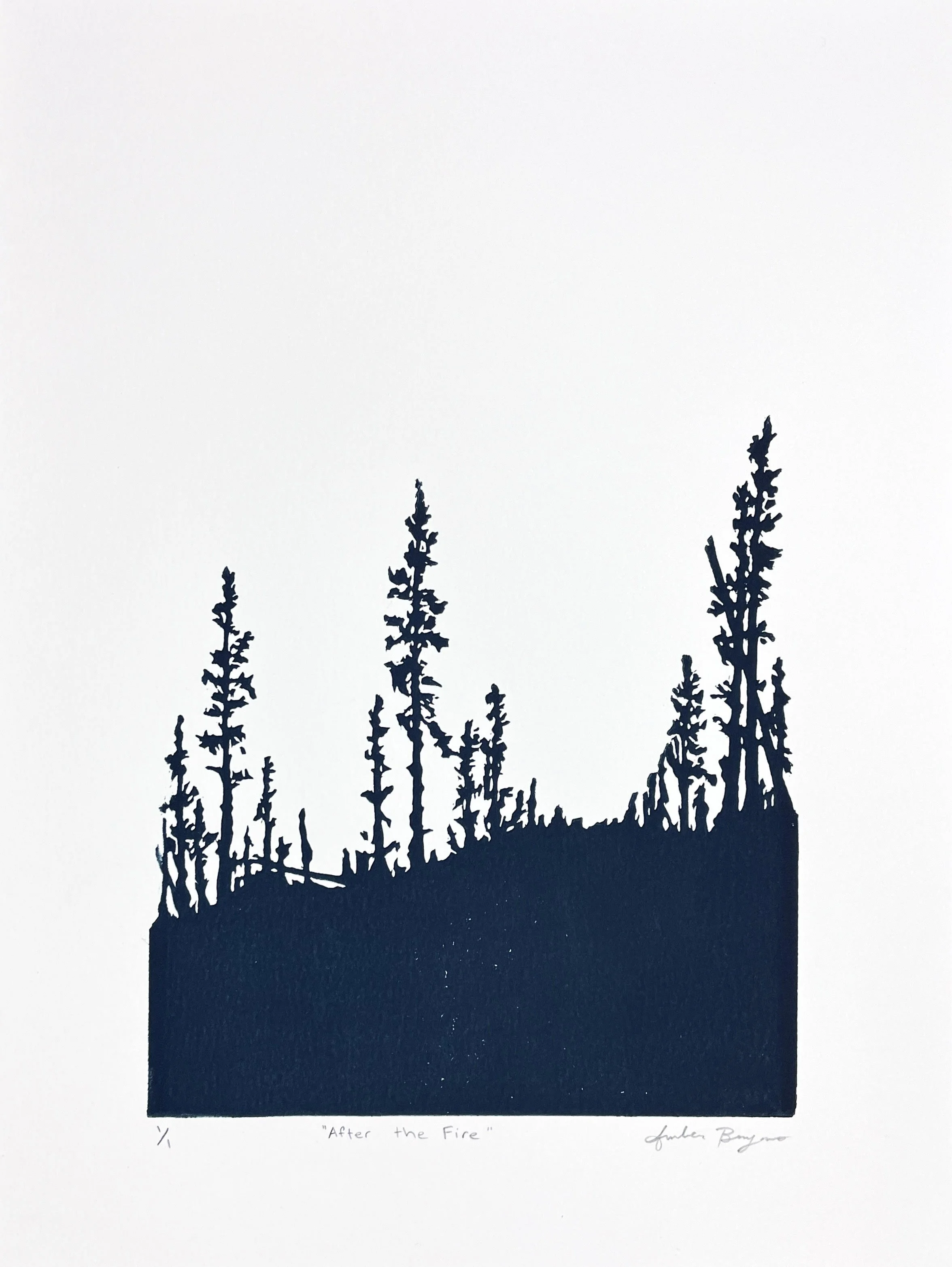 “After the Fire” By Amber Bryans Linocut | Water-based ink on Strathmore Mixed Media Paper 2021